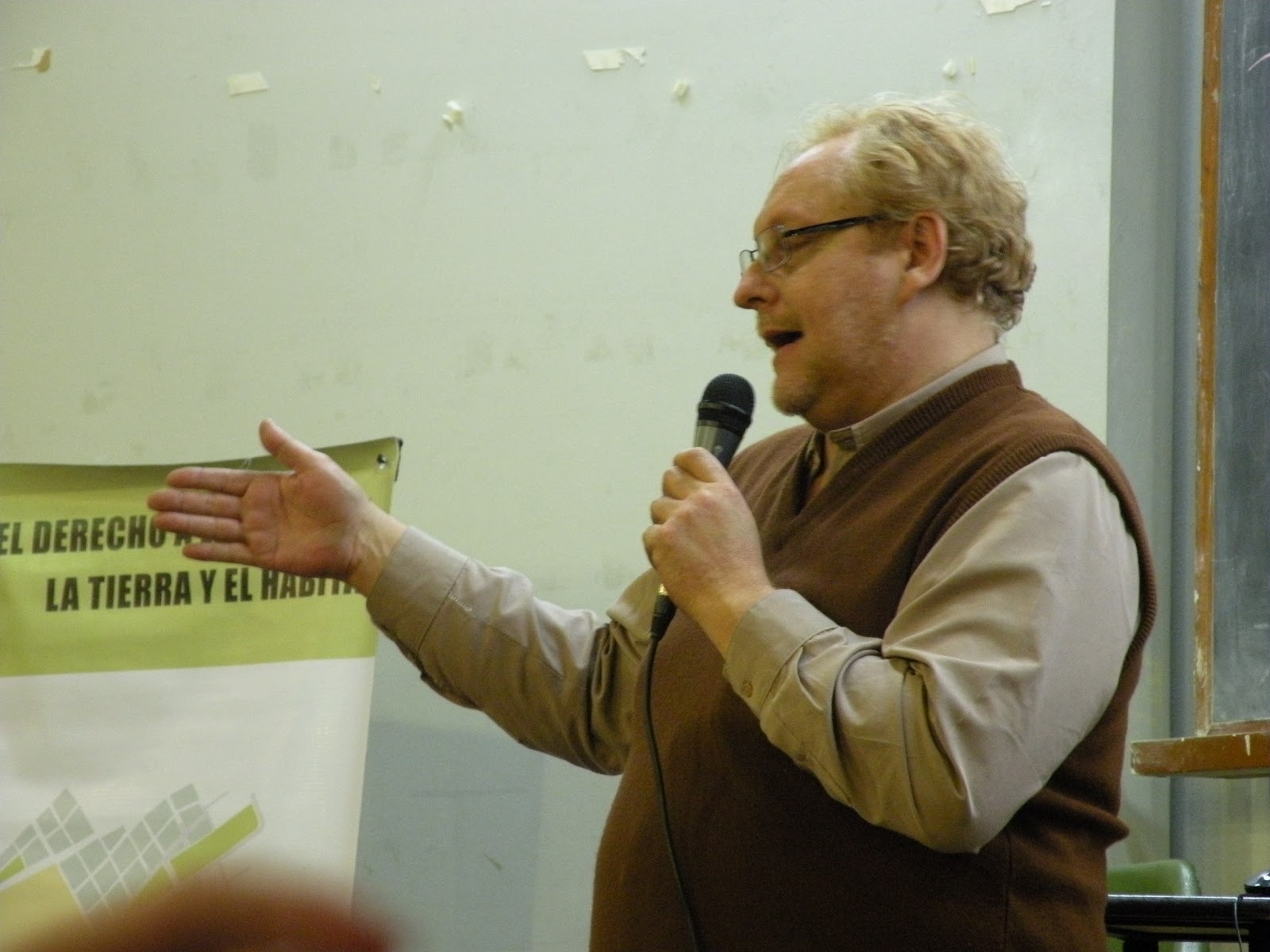 Representando a Habitar estuvieron presentes Eduardo Reese, Javier Goldin, Jose “Colo” Rocha, Sebastián Tedeschi, Alicia Alcaraz y Lucas Ghioni. La presentación del Proyecto de Ordenamiento Territorial estuvo a cargo del arquitecto y urbanista de la Universidad General Sarmiento “Se debe tener en cuenta que la Argentina es uno de los países más urbanizados del mundo (9 de cada 10 habitantes viven en ciudades), el más urbanizado de América Latina y muy antiguamente urbanizado. En la década del 30, más del 50% de la población argentina estaba urbanizada” señaló refiriéndose a la necesidad de contar con esta ley, entonces, por qué “nunca se tuvo una política pública expresa, estatal que regule el suelo. Esta aparente paradoja no lo es porque una ley de ordenamiento urbano regula, justamente, lo que puede o no hacer cada propietario con sus lotes. Y, en este país, la tierra explica la formación de las fortunas de las familias dominantes. De allí que resulta obvio por qué Argentina es el único de los países federales de América Latina que no tiene una ley de ordenamiento territorial”. Reese recordó que “en la década del 90 se produjo una segmentación y división de las ciudades. Los sectores de altos ingresos optaron por ´autoaislarse´ mientras los sectores de bajos ingresos ingresaron en la pobreza y fueron aislados de las ciudades”. El arquitecto señaló que “en Argentina se paga un precio exorbitante por la tierra, inclusive al compararlos con los precios de cotización en los países más desarrollados. Esto implica una retención especulativa muy importante. Los propietarios especuladores son un sector parasitario de la economía. Compran tierras, las sacan del mercado y esperan que aumenten de precios. Esta profecía autocumplida, crea un proceso de escasez artificial de la tierra que hace aumentar los precios artificialmente. Y este sistema perverso no está castigado en la Argentina, por el contrario es perfectamente lícito”.