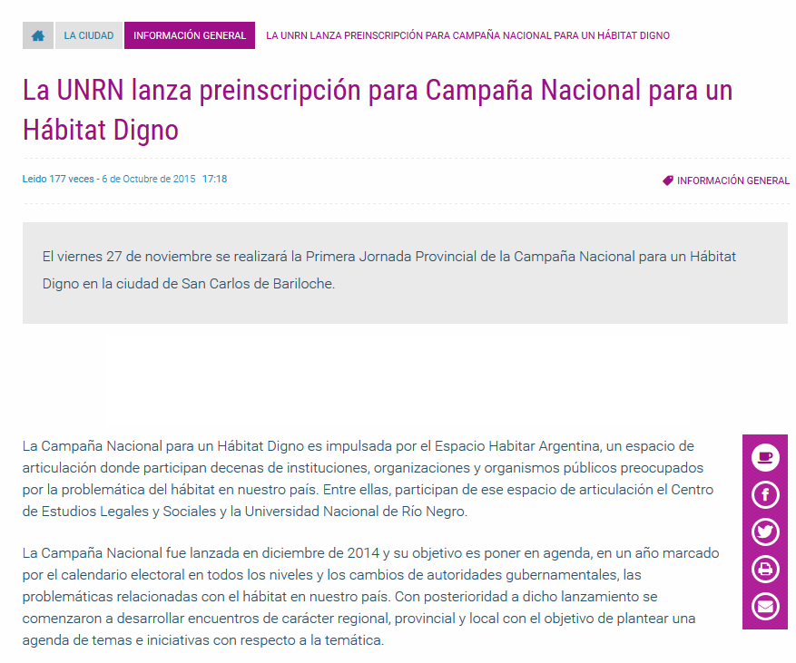 HABITAR ARGENTINA es un colectivo conformado por organizaciones, instituciones académicas, movimientos sociales y legisladores/as, que trabajan con el objeto de generar un marco normativo para garantizar el derecho a la vivienda, la tierra y al hábitat digno para todos/as.